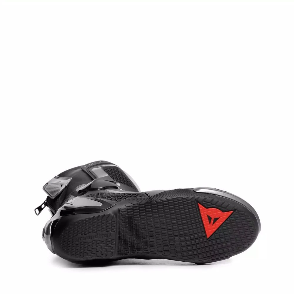 - Geoptimaliseerde Zolen: Groundtrax® asymmetrische zolen ontworpen voor superieure grip en hittebestendigheid, met specifieke zones voor schakelen en remmen.