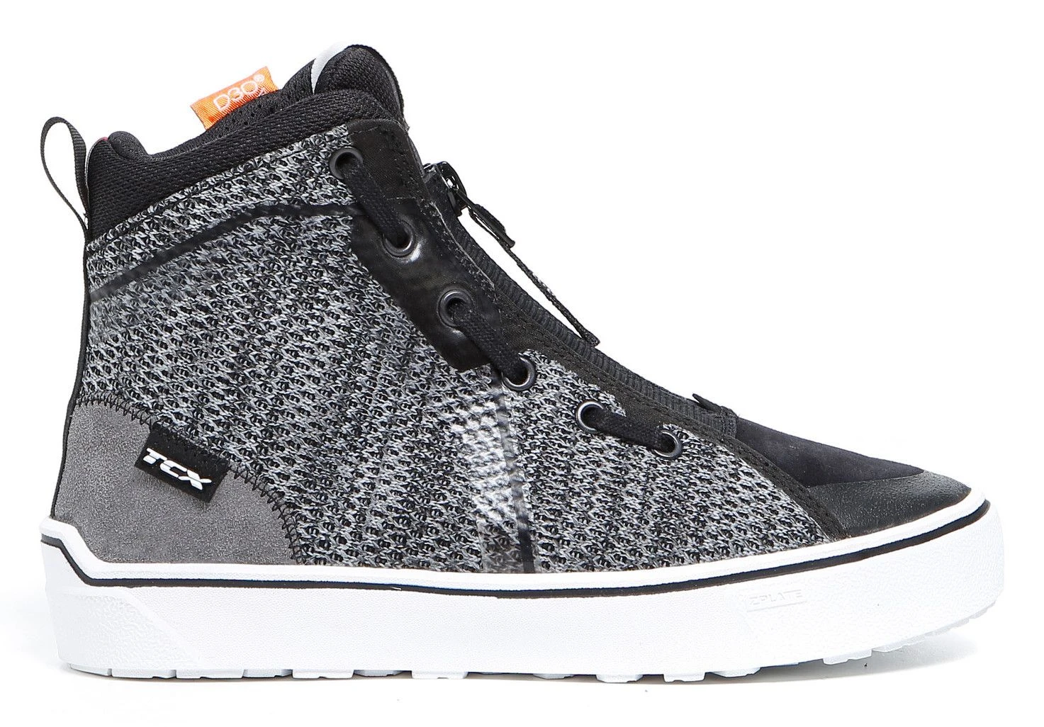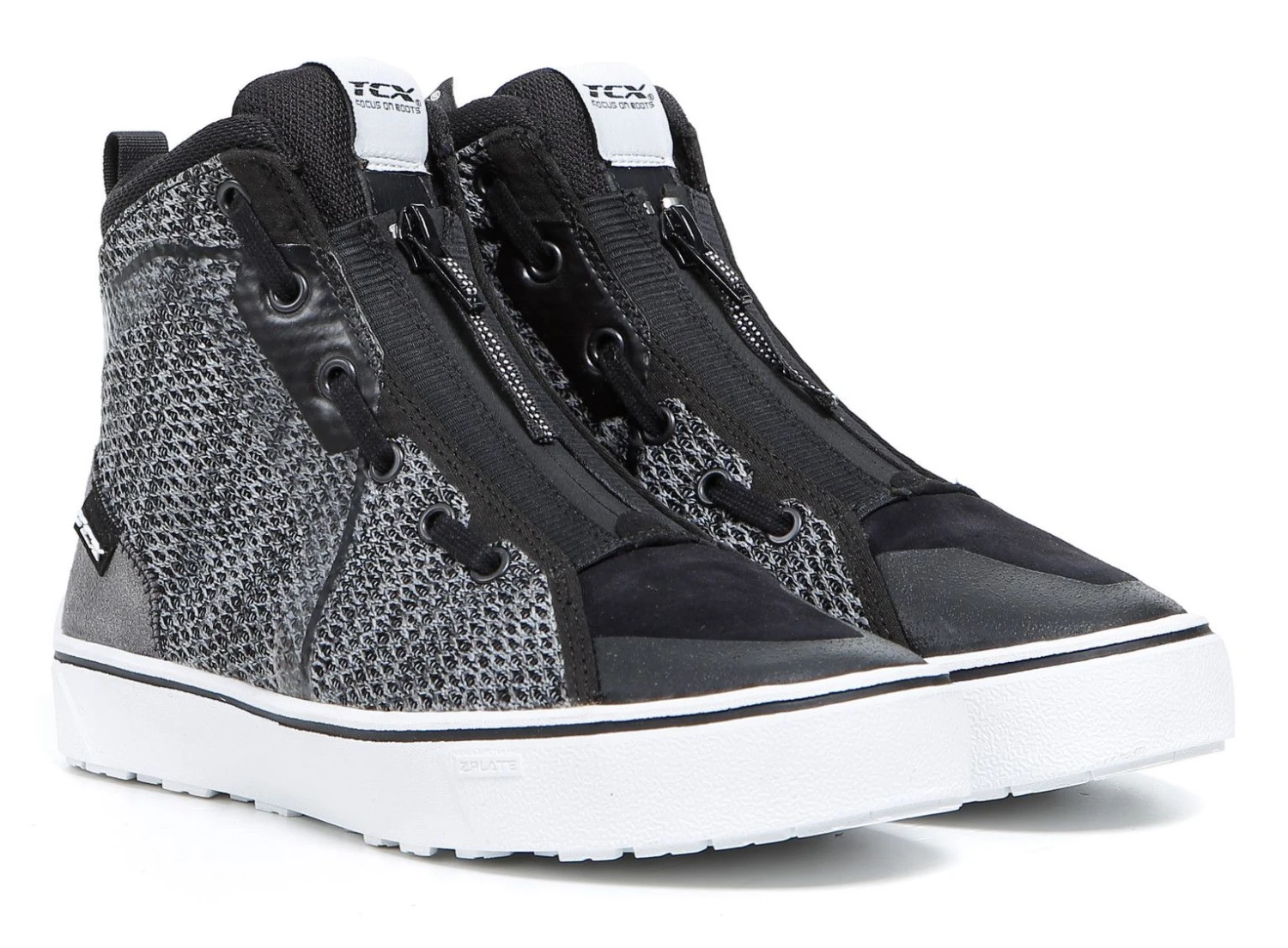 De TCX Ikasu Air verheft de motorsneaker tot modestatement. Het contrasterende textiel geeft hem een eigentijdse uitstraling en tegelijkertijd verkoelende eigenschappen voor de zomerritten. Voorzien van de nodige bescherming en uitmuntend draagcomfort waardoor de Ikasu Air zomaar je favoriete paar sneakers kan worden. D3O is als partner betrokken voor de enkel protectie en ook de hiel en neus zijn onzichtbaar versterkt. Dankzij de speciale Zplate die in de zool is geïntegreerd zijn je voeten optimaal beschermd.