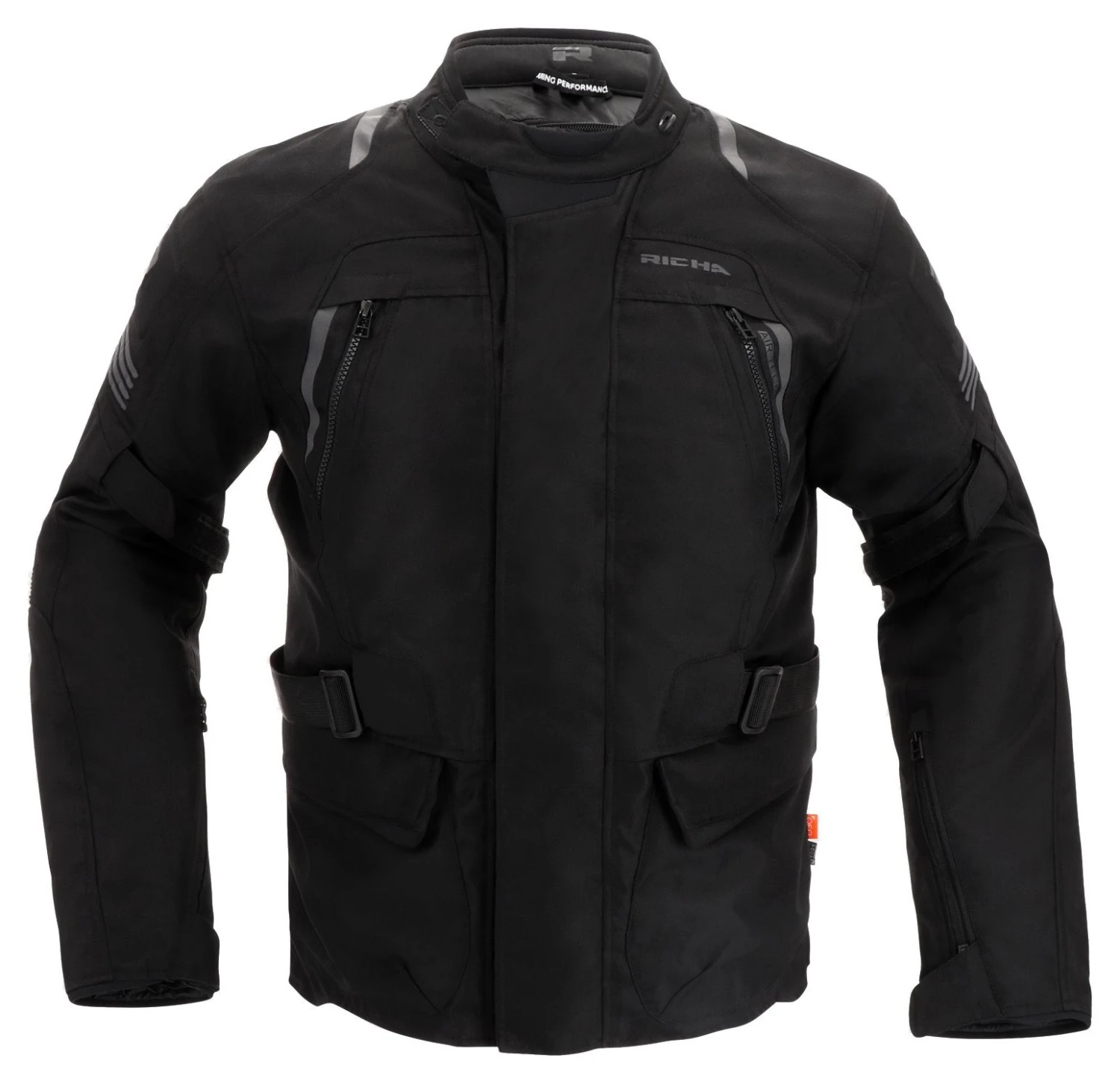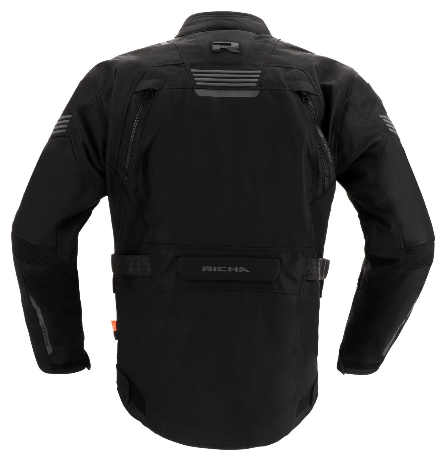 Zoals het een touring jacket betaamt beschikt die over de nodige verstelbanden voor optimale aansluiting. Op de ellebogen en schouders vinden de D3O level 1 protectoren hun weg en zelfs op de rug is standaard een level 1 D3O protector toegevoegd. Je kunt de Phantom 3 motorjas door de korte verbindingsrits combineren met elke Richa textiel motorbroek om zo je touring set te vervolledigen.