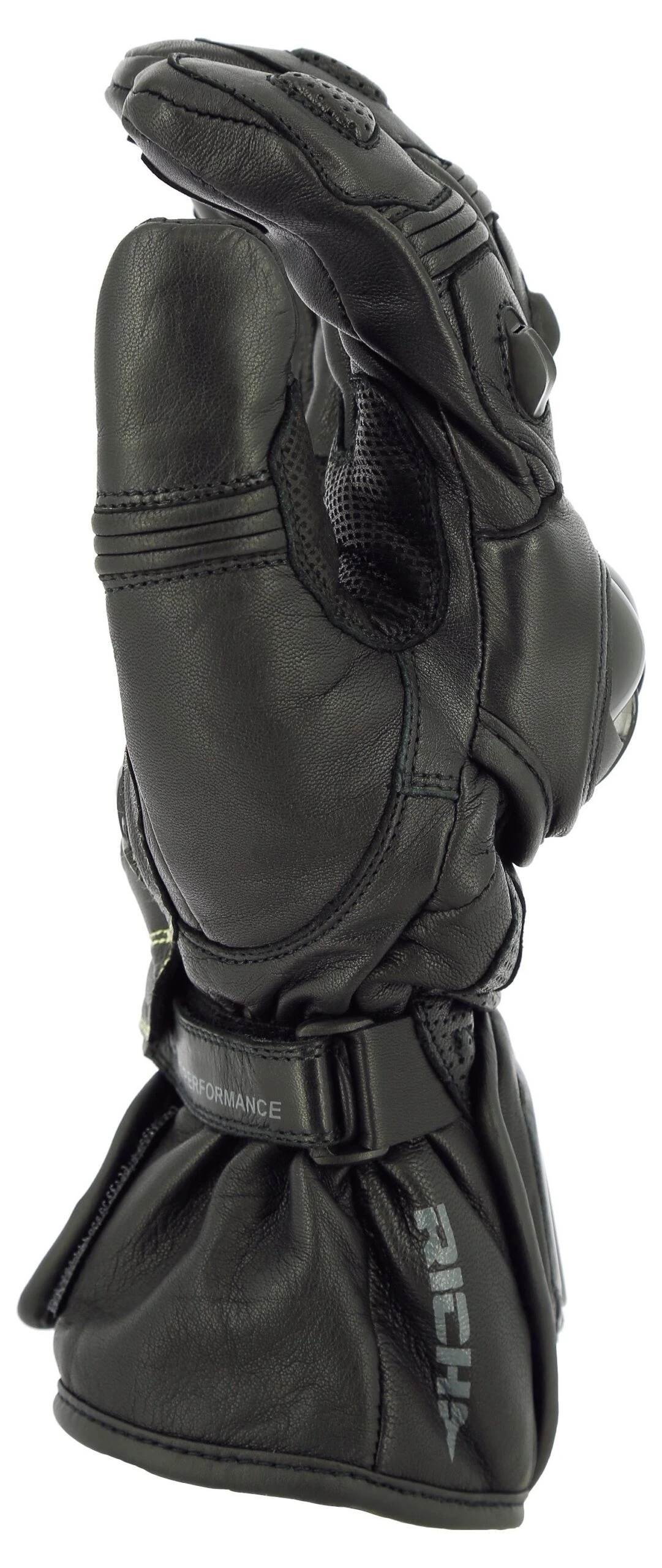 Om optimale slijtvastheid te kunnen bieden heeft Richa gebruik gemaakt van hoogwaardig leer wat op de meest kwetsbare delen waaronder de pinkzijde van de handschoen met twee lagen is aangebracht. Op de pols, vingers en knokkels heeft Richa harde protectoren verwerkt welke optimaal dienst doen in geval van een valpartij. De sluiting is voorzien van twee klittenband straps, ronde de pols en op de manchet om goed aan te kunnen sluiten op een motorjas.