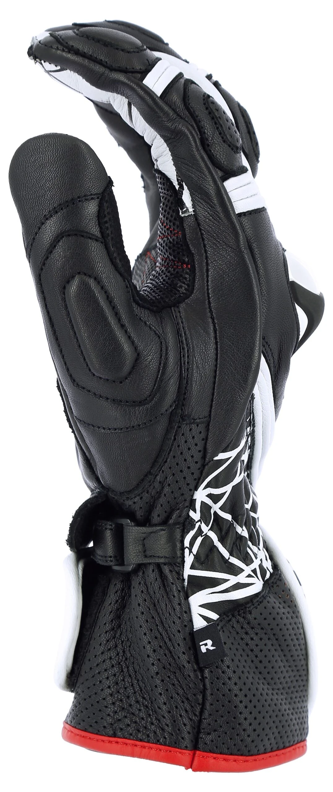 De Tiran is vervaardigd uit hoogwaardig en slijtvast geperforeerd geitenleer met een ademend karakter wat naast het bieden van een optimale bescherming ook afvoer van angstzweet mogelijk maakt. De knokkels zijn voorzien van een harde protector en op de vingers, handpalm en bovenkant van de handschoen is een extra laag foam protectie verwerkt. Ook niet onbelangrijk bij een racehandschoen is de brug tussen de pink en ringvinger wat voor een stevige verbinding van de pink zorgt. De lange manchet zorgt ervoor dat de handschoen over een motorjas heen te dragen is wat zorgt voor een goede aansluiting en bescherming rond de pols.